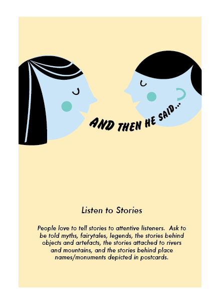 Mapping these ideas onto Third Space, we wanted to provide students with basic training in creating stories out of raw experience. Storytelling is an alternate currency all around the world. If you can tell a story, you’ll find a welcome anywhere you go. Better yet, ask people to tell you stories, the stories behind place names, the stories behind events, the stories behind landmarks, the stories behind people’s names…